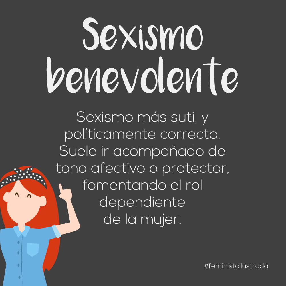 Podemos distinguir entre dos tipos de sexismo: el hostil, más agresivo y dominador, y el benevolente, más protector y sutil. Ambos son una herramienta más para justificar y mantener la dominación del hombre sobre la mujer, pero el hostil comienza a estar mal visto así que debe dejar paso al otro más políticamente correcto, que pueda permanecer encubierto en estos tiempos.